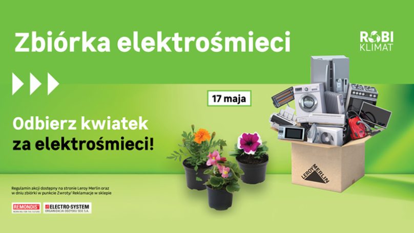 Zbiórka elektrośmieci. 17 maja 2025r. odwiedź Leroy Merlin, oddaj elektrośmieci i odbierz kwiatek !
