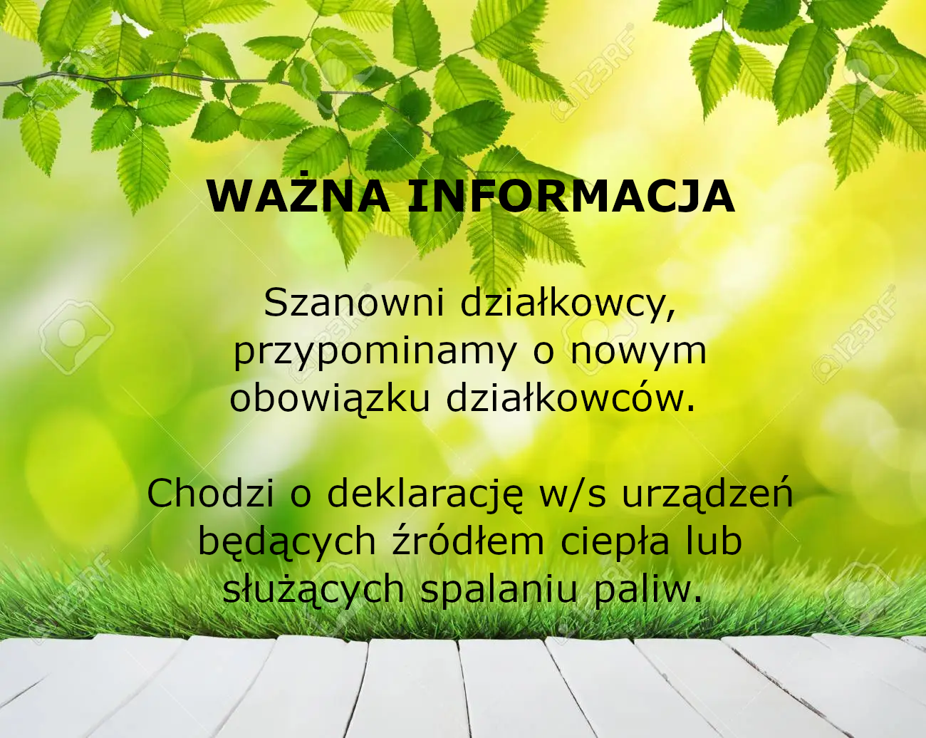 WAŻNA INFORMACJA: Szanowni działkowcy, przypominamy o nowym obowiązku działkowców. Chodzi o deklarację w/s urządzeń będących źródłem ciepła lub służących spalaniu […]